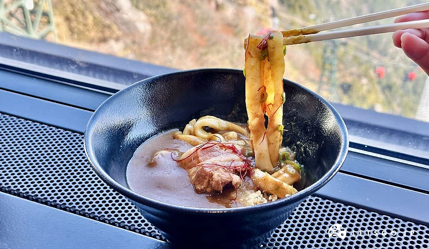 位于三重县与滋贺县交界的御在所岳是知名的高山观景地标,搭乘长达 2 公里的「御在所缆车」,随着高度拉升,伊势平原、连绵山脉逐渐展开,四季各自呈现截然不同的样貌。山顶周边规划完善的散策路线,可前往朝阳台广场、富士见岩展望台等地点,其中最受大家喜爱的是观景台「COCORU」,这里设有悬空荡秋千,在半空中摆荡,彷佛直接投入云海之上,是非常具代表性的拍照亮点。山上餐厅更有必吃名物御在所咖哩乌龙面,以伊势乌龙面搭配胶质丰富的红烧猪肉与浓郁咖哩收尾,是走完山顶散策后最能恢复体力的一道美味料理。