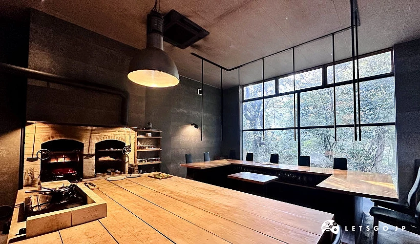 园区内的「焱 HINOMORI」更是一座秘境般的隐藏餐厅,以炭火与食材本味为主轴,呈现伊势湾海鲜与日本国产肉类、在地蔬果的浓厚风味。料理在开放式炉台前现烤现作,火光、香气与窗外森林景交织,带来极具存在感,色香味俱全并充满视觉飨宴的用餐体验。