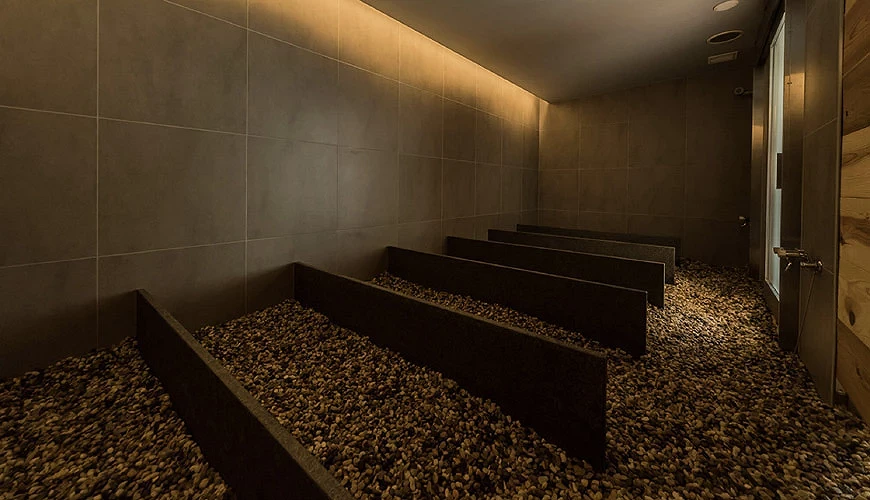 「AQUAIGNIS」内还有一处疗癒的场所,那就是矿物蒸气浴「Le Furo」,整体环境以木质与石材营造静谧氛围,以温和的矿物蒸汽为核心疗程,透过包覆式暖蒸让身体逐渐放松、加强新陈代谢。与一般桑拿不同,「Le Furo」的蒸气温度柔和、不刺激,能同时感受到暖意与放松。