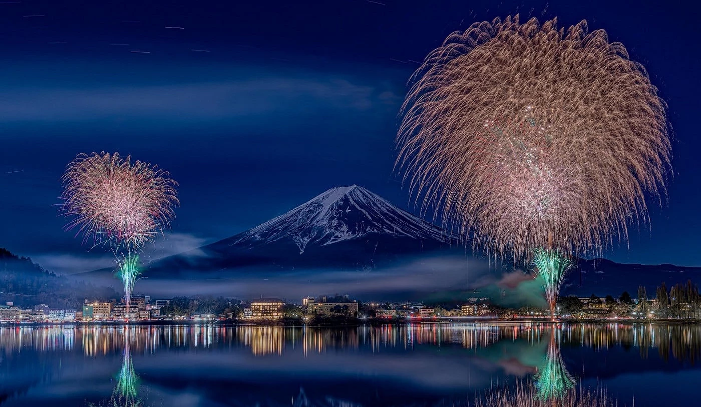 每年1月下旬至 2 月下旬的周末以及2月23日「富士山日」,河口湖都会举办「河口湖冬季花火大会」。虽然烟火主要于南岸大池公园、八木崎公园施放,但大石公园因为是「完美对岸视角」,能将富士山、湖面倒影与夜间花火三个元素同时收入画面,是极受摄影师推崇的顶级观赏点。建议大家于傍晚前先抵达卡位,选择视野宽阔的位置等待开场。另外,冬季夜间气温极低,请务必准备保暖衣物与手套,以便长时间观赏美丽的烟火表演喔!