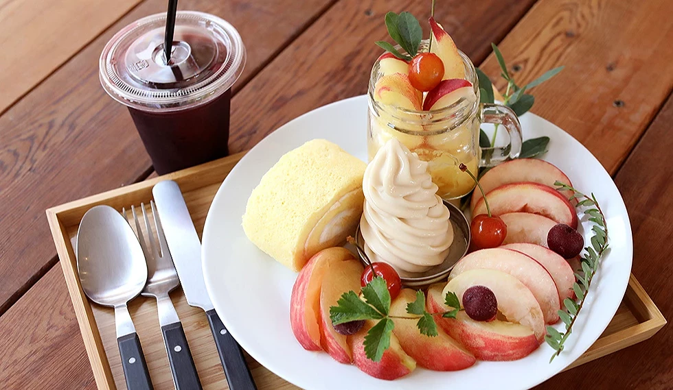 「葡萄屋」是富士大石 Hana Terrace 内的水果甜点名店,主打当地水果制作的霜淇淋、蛋糕卷;霜淇淋香气浓郁、口感清爽,搭配产地直送水果,深受旅客喜爱。而季节限定的白桃、葡萄等甜点拼盘用料丰盛,人气高到通常需要先预约才吃得到,记得再来片带点酒味的兰姆葡萄夹心饼干,赏花后享用超幸福!